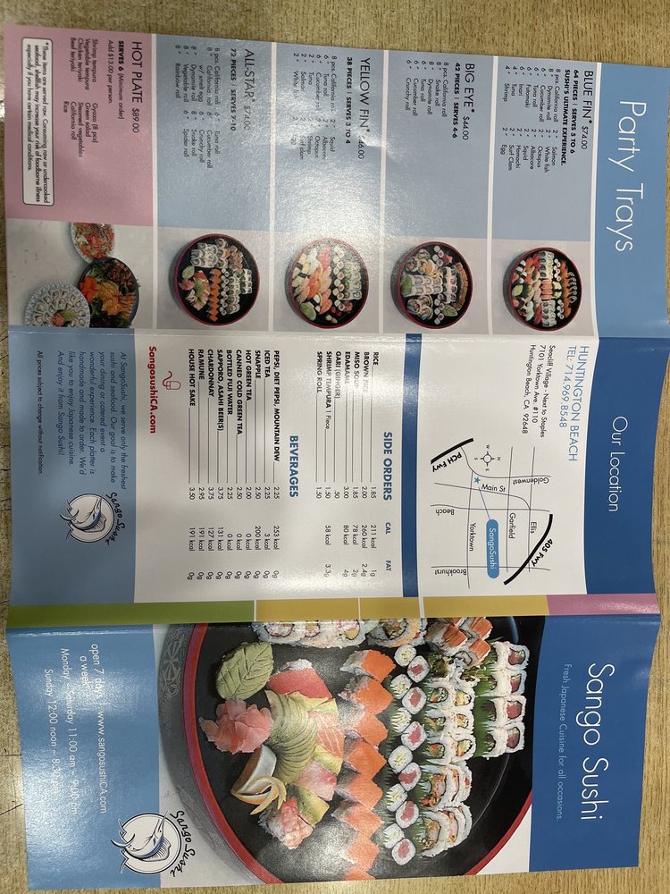 Introducing the menu at Sango Sushi Restaurant in Huntington Beach offers a wide selection of Japanese sushi combos, rolls, and special rolls. The restaurant provides takeout, delivery, and catering services with vegan and limited vegetarian options available. With a casual and inviting atmosphere, Sango Sushi is wheelchair accessible and caters to groups and kids.